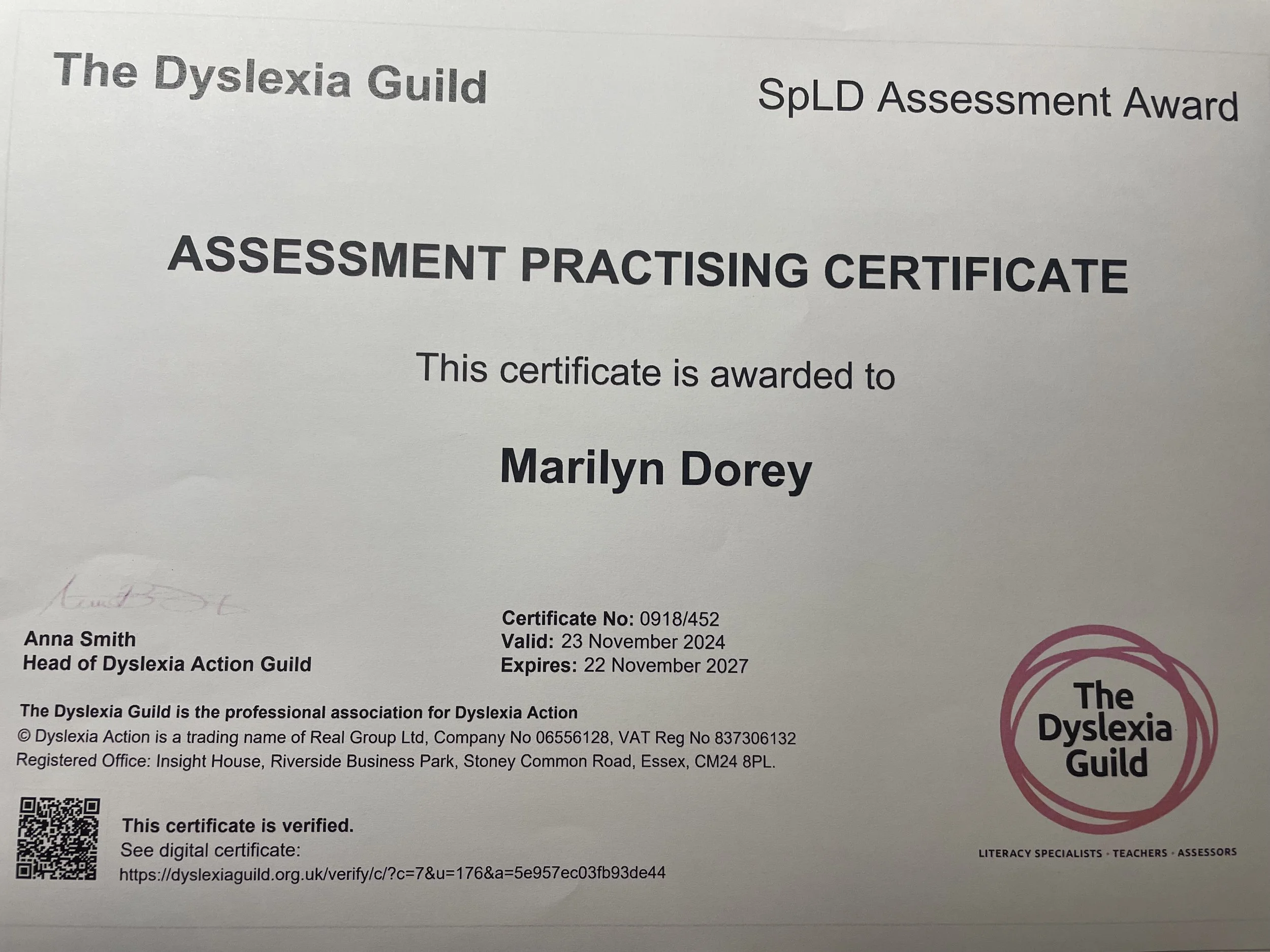 Assessment Practising Certificate (APC) Issuing Body: 0918452 - The Dyslexia Guild